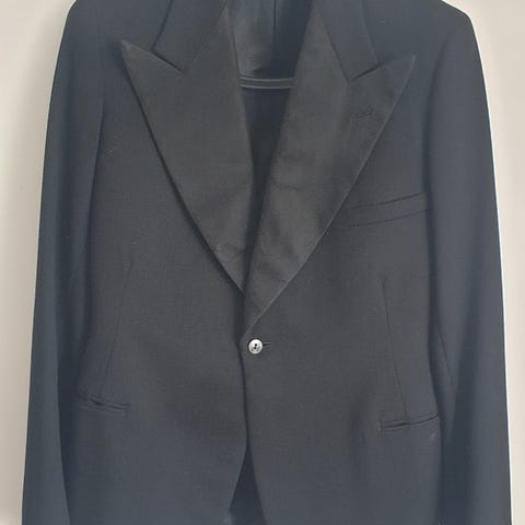 Smoking från Oscar Jacbdon storlek B 48 byxa o kavaj. Även smokingskjorta ingår.