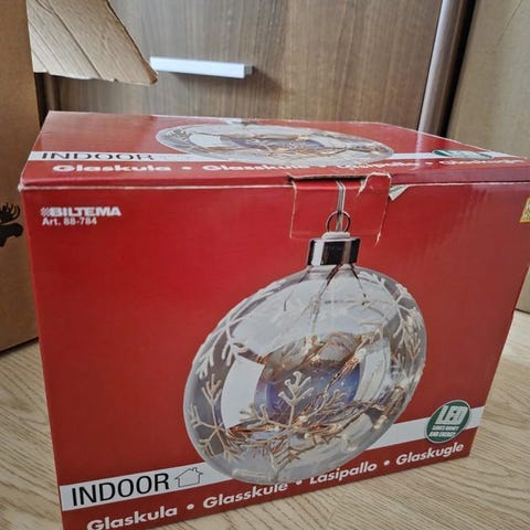 Rusta Gute dekorationsbelysning i form av en rund glasglob. Lampan har inbyggd ljusslinga med flera små ljuspunkter inuti globen. Passar som stämningsbelysning i fönster. Drivs med el enligt uppgift på förpackningen och är avsedd för inomhusbruk.
