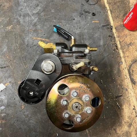Okänd tändmagnet till motor i metall. Enheten har anslutning för tändkabel och mekanisk arm för reglering. Passar som reservdel eller utbytesdel till lämplig motor där denna typ av magnet används. Exakt modell, effekt och kompatibla motorer är okända och bör kontrolleras mot befintlig utrustning innan användning.