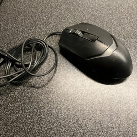 Fujitsu datormus med kabel i svart färg. Standardmodell med två knappar och rullhjul, ansluts via kabel till dator. Passar för allmän datoranvändning som kontorsarbete, studier och hemmabruk.
