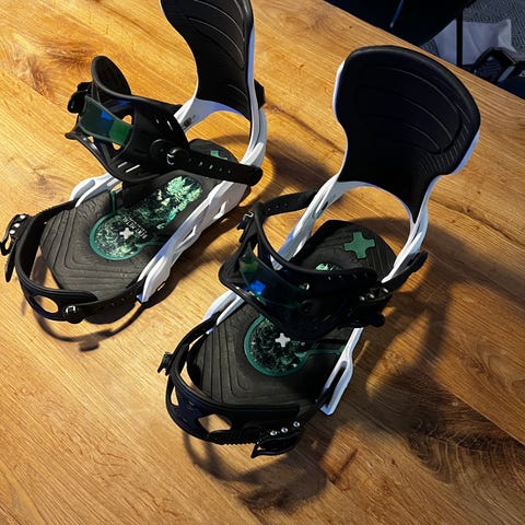 Snowboardbindningar för junior. Max storlek 38-39 skulle jag säga. Bra för den som vill testa bräda!