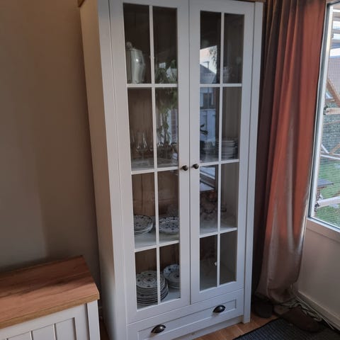 I rätt bra skick. Är i två delar så den översta delen med glasskåpet kan tas bort för lättare transport. Hämtas på plats med eget fordon. Säljer för att vi inte har plats för den.