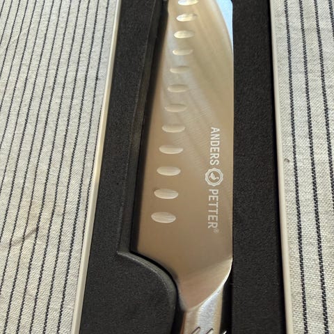 Har inget behov av denna Kockkniv och säljer den därför. Blev tvungen att sprätta upp förseglingen så att jag kunde fota kniven. Helt ny, oanvänd och kvar i sin originalförpackning. Ordinarie pris butik 449 kr.
