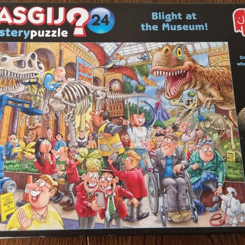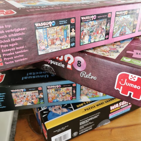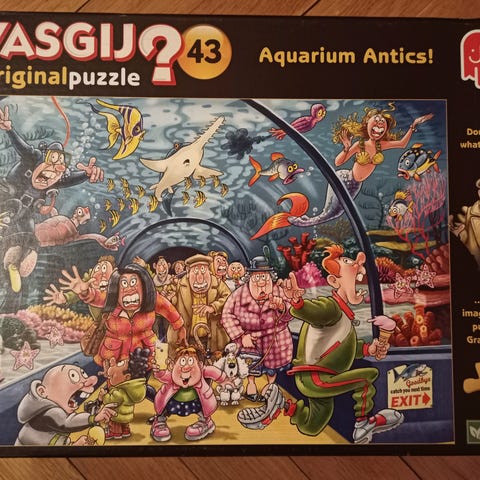 Wasgij Mystery är ett unikt pusselkoncept där du inte pusslar motivet du ser på lådan. Istället ska du använda ledtrådarna och din fantasi för att pussla ihop hur scenen kommer att se ut efter att händelsen på bilden har utspelat sig.