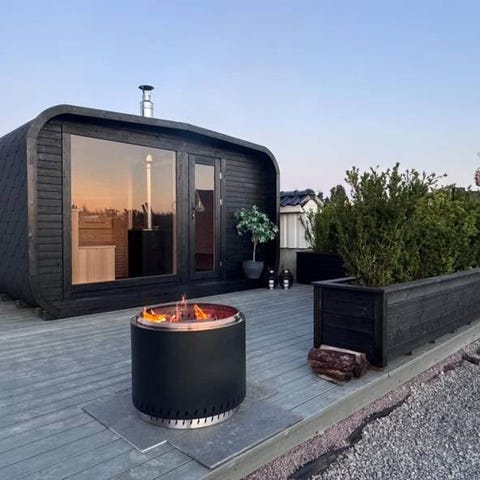 Bastun GLÖD med Relax från Eldsmedjan erbjuder en modern och tilltalande design som skapar en fantastiskt härlig rymd invändigt. Den rundade formen gör att den varma luften cirkulerar på ett sätt som liknar en helt rund bastutunna, samtidigt som du kan njuta av att sitta högre tack vare formen.