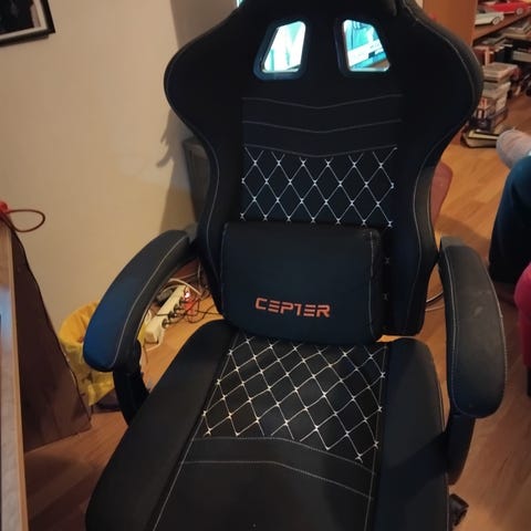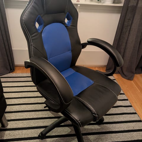 Säljer min gaming stol som är ganska sliten (som ni ser på bilderna). Går att justera och går att montera ner. Här är även länk om ni undrar över mått!