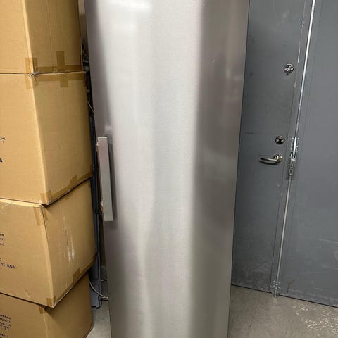IKEA side-by-side kyl och frys i rostfritt utförande. Skåpen har separata dörrar med vertikala handtag. Invändigt finns flera justerbara glashyllor, trådkorgar och dörrhyllor för förvaring av matvaror. Kylskåpsdelen har bland annat flaskhylla och grönsakslåda, medan frysdelen har flera utdragslådor och hyllplan. Utförandet är anpassat för inomhusbruk i kök med standard elanslutning enligt märkplåten på insidan.
