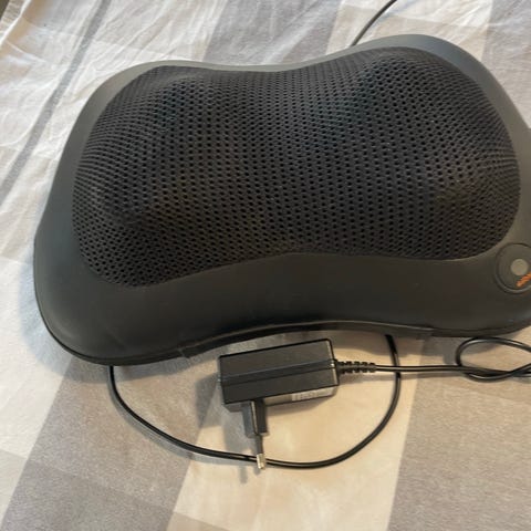 Obrunn massagekudde med rygg- och nackdel i svart utförande. Produkten placeras på en stol eller fåtölj och har inbyggda massagefunktioner för rygg och nacke. Medföljande fjärrkontroll ger möjlighet att välja olika massageprogram och intensitetslägen samt värmefunktion. Passar för användning i hemmet för avslappning av rygg- och nackmuskler vid sittande.