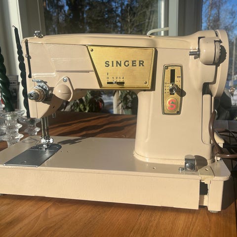 Industrisymaskin går på enfas/vanligt vägguttag. Syr tunna till grövre material, perfekt till jeans och bilklädsel.