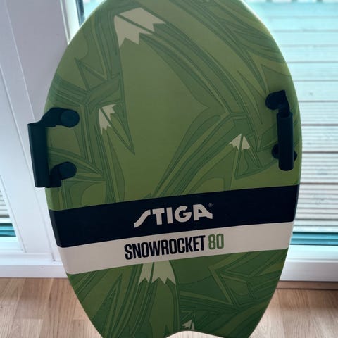 Stiga Snowrocket 80 snowracer i blå färg. Oval pulka/snowboard-liknande bräda med två handtag på ovansidan för bättre grepp vid åkning. Lämplig för åkning i backe på snö för barn och ungdomar beroende på vikt och längd. Tillverkad i slitstarkt material anpassat för vinterbruk.