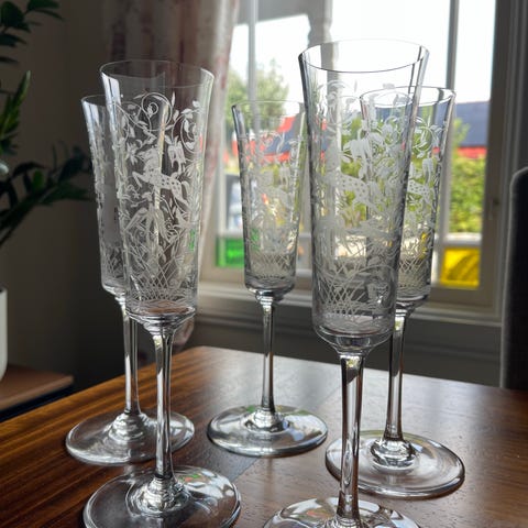 Chef & Sommelier champagneglas. Smal, hög kupa på fot som passar för servering av mousserande vin och champagne. Glaset är signerat Chef & Sommelier i botten.