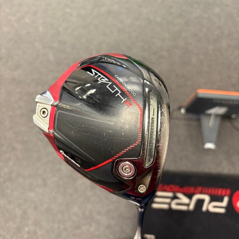 TaylorMade Stealth driver i svart utförande. Klubban har ett stort driverhuvud med Stealth-design och röd slagyta. Skaftet är grafit med märkning "Fujikura" och flex S. Greppet är svart med struktur för bättre grepp. Headcover i svart och rött med Stealth-logga ingår. Passar för golfspelare som söker en modern driver med grafitskaft och standardgrepp.