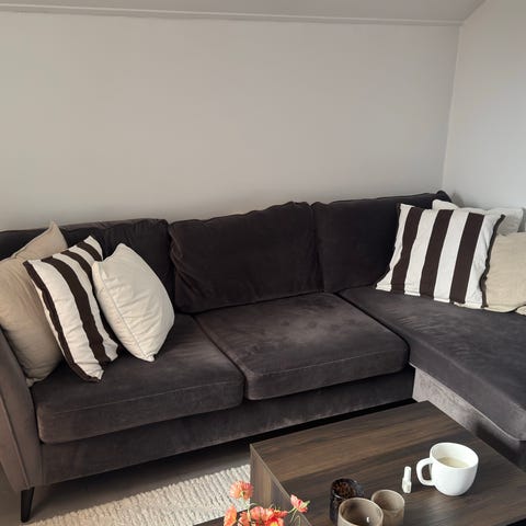 Skön och rymlig divansoffa men högt ryggstöd. Finns att hämta på Mariehem.