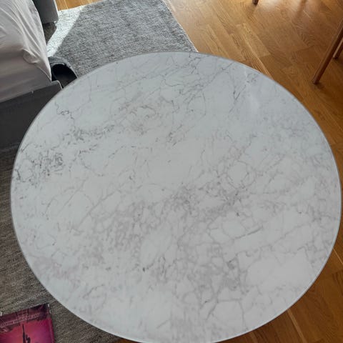 Runt soffbord vitt med marmor plast