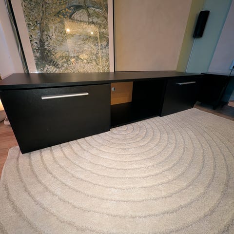 Säljer en TV-Hylla. Det är 3 små hyllor kombinerade tillsammans, vi formade det på detta sätt nät vi byggde hyllan.