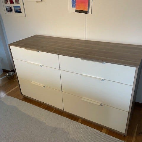 Byrå med 6 lådor. Synligt slitage.