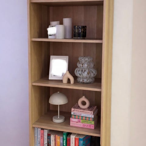 Stor Bokhylla i ek med Led-belysning