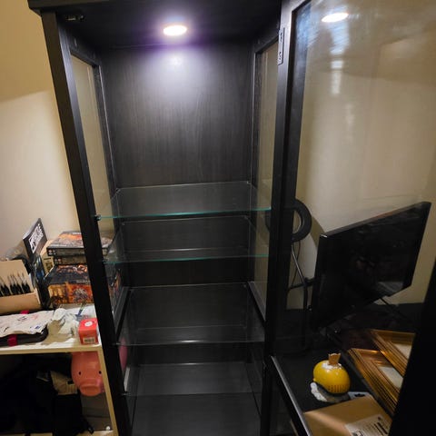 Skåp med glasdörrar och lampa kolla bilder för skick