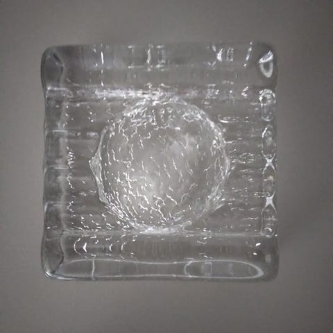 Askkopp från IITTALA, modell Solaris med vodkamärket "Finlandia" graverat på sidan.
