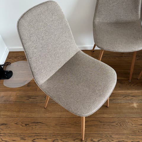 Ljusgrå med svarta ben. Bra skick, möjligtvis någon svag fläck som jag kan ha missat, men inget jag kan se. Inget att anmärka på.