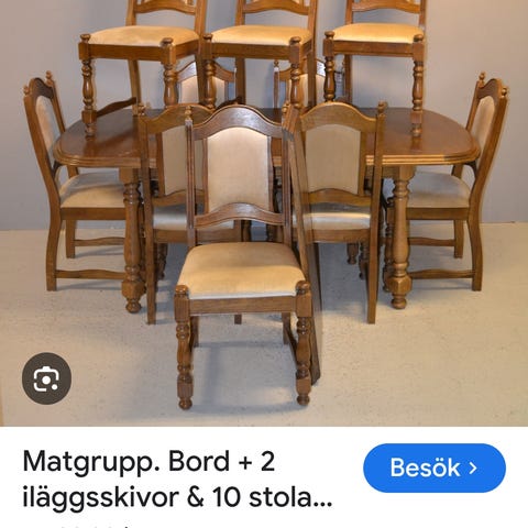 bord med 6 stolar