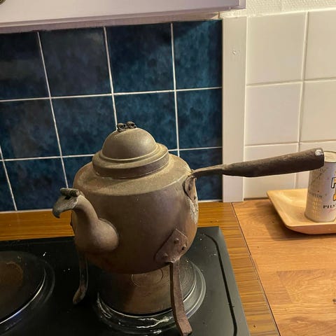 Höganäs Keramik tekanna med värmare i brunglaserat stengods. Tekannan står på en separat värmare med öppningar för värmeljus.
