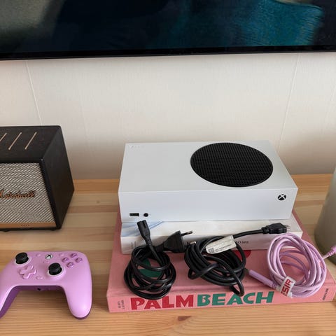 Ett Xbox Series S i vitt med en kontroll.