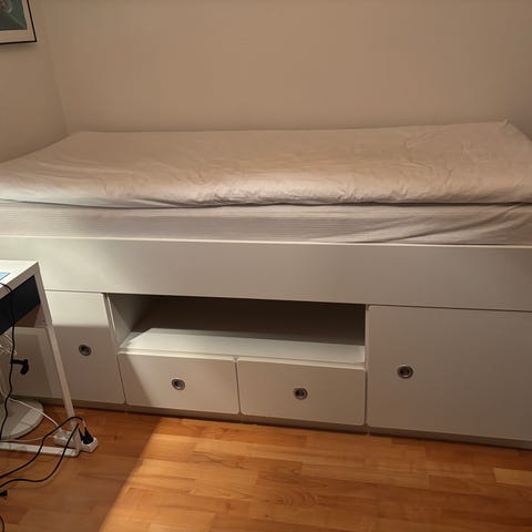 Säng med förvaring 2 skåp, 2 lådor. Köpt på Mio.