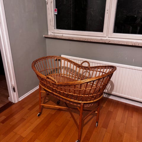 Nu säljer vi en charmig och tidlös barnvagga i rotting. Perfekt för nyfödd – både praktisk och en fin inredningsdetalj i barnrummet.
