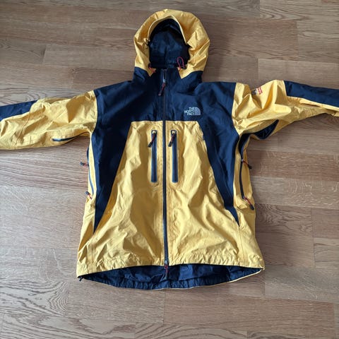 The North Face Futurelight jacka för herr i storlek L. Skaljacka i Gore-Tex-liknande, vattentätt och ventilerande material med flerfärgad design i orange och mörkare partier. Jackan har fast huva, hel dragkedja framtill och flera fickor med dragkedja. Lämplig som ytterjacka för skidåkning, friluftsliv, vandring och vardagsbruk i varierande väderförhållanden.