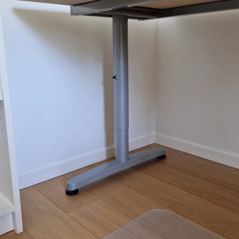 Skrivbordet är stabilt, rymligt och passar utmärkt för både hemmakontor och studier. Det är i bra skick.