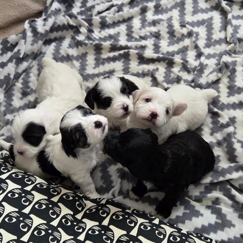 Den 13/2 föddes en fantastisk kull i många fina färger hemma hos oss.
