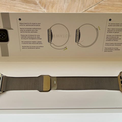 Apple Watch smartklocka för unisex. Klockan levereras i originalförpackning enligt bilderna. Modellen har rektangulär urtavla och medföljande armband. Lämplig för vardagsanvändning, träning och notifieringar från ansluten iPhone. Stöd för pekskärm och trådlös laddning enligt Apple Watch-standard.