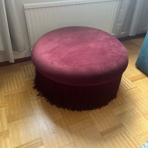 En fin bolia puf i grå färg, med uttryme för förvaring. Går bra att sitta på den och förvara olika saker i. Fler frågor skriv :)