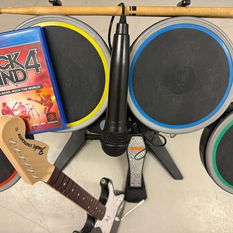 Komplett och fungerande trumset till Guitar Hero för Nintendo Wii. Perfekt för att bygga ett fulltaligt band hemma i vardagsrummet.