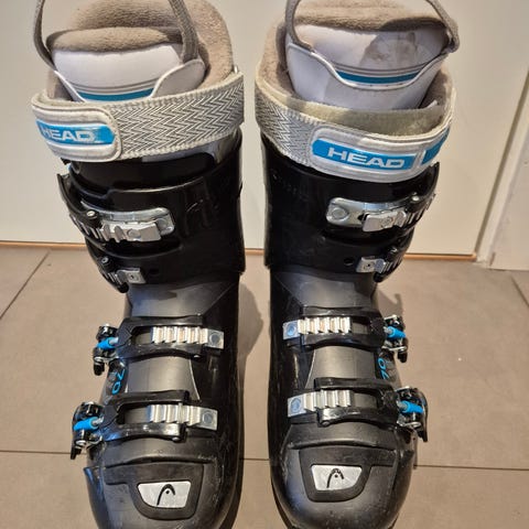 Dalbello pjäxor i svart och rosa med flera spännen framtill för justering och stabilitet.