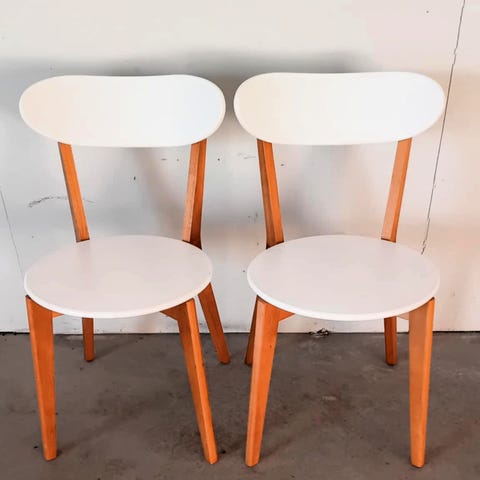 Artek stol i trä med vit sits, formgiven av Alvar Aalto. Stolen har böjträben och rund sits i ljus träfinish med vit ovansida. Passar som matstol eller extra stol i kök, vardagsrum eller andra rum där en kompakt och stapelbar sittplats behövs.
