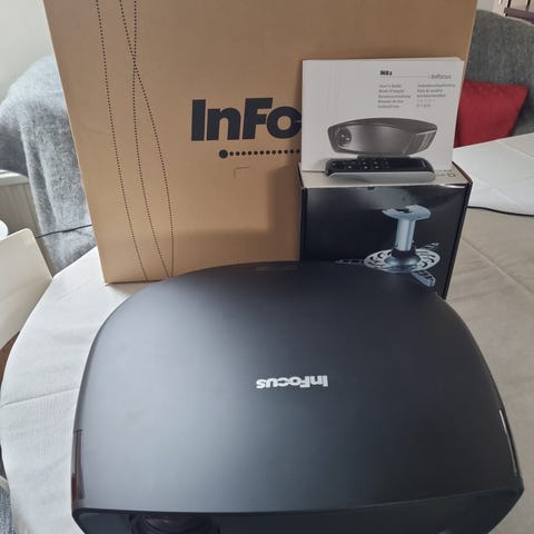 Horlát home theater projector projektor i svart utförande. Projektorn levereras med fjärrkontroll och originalkartong. Lämplig för hemmabio och filmvisning inomhus. Exakta tekniska specifikationer som upplösning, anslutningar och ljusstyrka framgår inte av bilderna och bör kontrolleras vid behov.