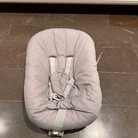 Babysitsen har vadderad klädsel och säkerhetssele, nytvättad. Båge medföljer.