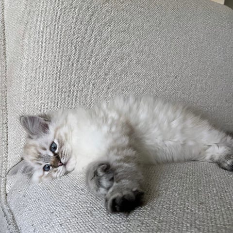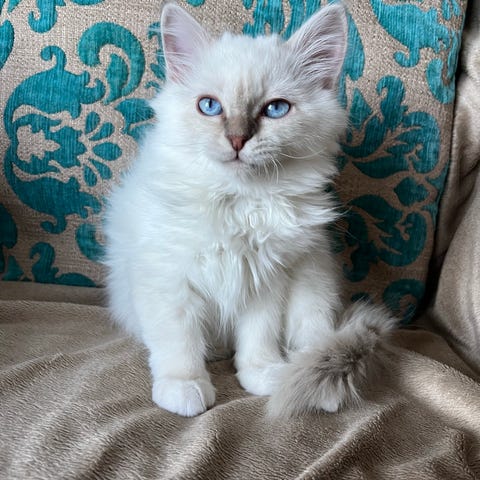 Finaste ragdoll honan född 18/10-2025 söker nu ett nytt hem. Junior är vaccinerad, chippad, besiktad och går på låda. Hon har ett jättefint temperament, är lekfull och följer efter överallt och sover bredvid. Hon älskar små studsbollar och andra leksaker.