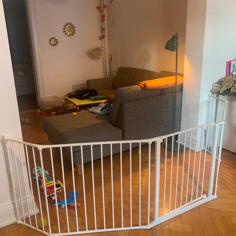 Säljer 2 stycken vita säkerhetsgrindar i metall från BabyDan.. I nyskick och utan repor eller skador. Alla skruvar och tillbehör finns med.