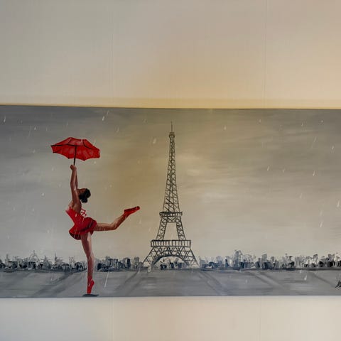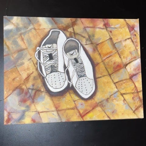 Tavla i metall/relief med motiv av en högklackad sko i New York deluxe still.