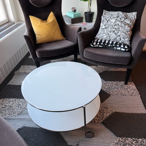 Säljer ett svart runt sovbord från ikea som är 85cm brett och 50cm högt.