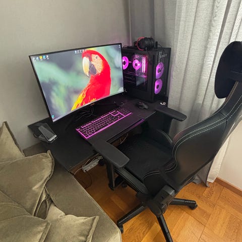 Allt är välskött och fungerar felfritt. Setupen är stilren i svart/grå design och passar perfekt i gamingrum eller kontor.