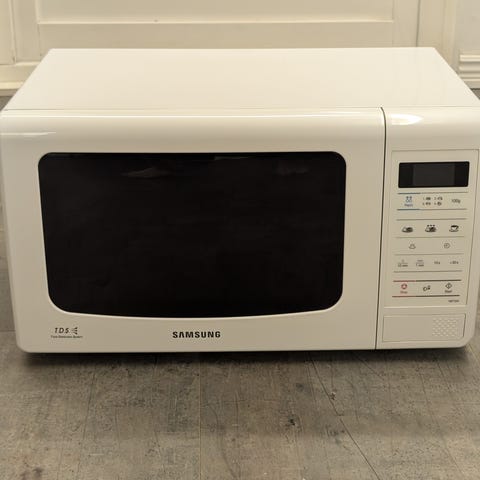 Vi säljer en mycket lite använd Samsung mikrovågsugn som fungerar perfekt. Den är i utmärkt skick och passar utmärkt för både värmning och tillagning av mat