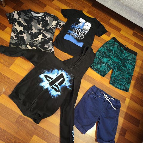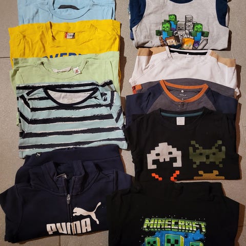 T-shirtar för pojke i storlek 134 i flerfärgade utföranden. Setet innehåller flera kortärmade tröjor med olika tryck och färger. Passar vardagsbruk och fritidsaktiviteter för barn i storlek 134-146