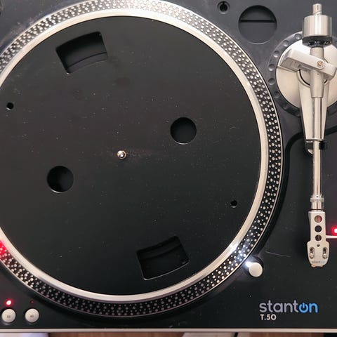 Thorens modell TD 104 har en fjädrar upphängning och touch-kontroll för RMP knapparna. Knappar, spacken och justeringen fungerar utan problem. Några mindre märken finns på ovansidan.
