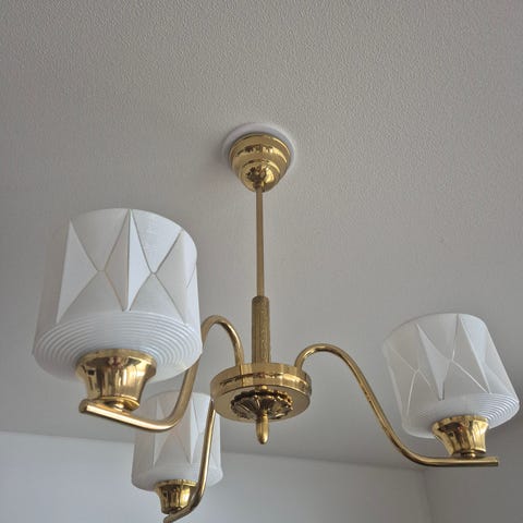 Fyra ljusarmar samt ytterligare ljuskällor inuti kupan. Kan tändas separat.