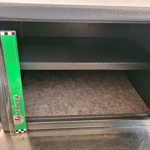 Smidigt säkerhetsskåp att förvara personliga tillhörigheter i. Styrs genom touchdisplay med motorlåsfunktion. Automatiskt rörelselarm. Insidan är klädd med svart sammet.