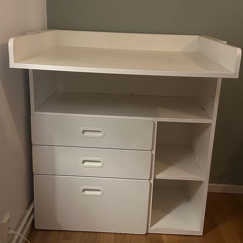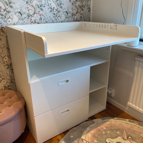 Säljes Ikea möbel som enkelt kan användas som skrivbord och som skötbord (man flyttar upp eller ner den stora överdelen). Vi har mest använt den som skötbord.